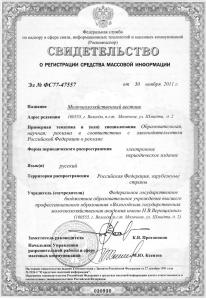 The journal is registered in the Federal Supervision Service on Information Technologies and Mass Communications, registration number is El № FS77-79297 is from November 2nd 2020..